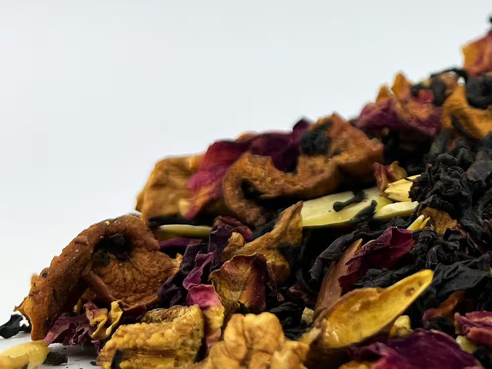 Opis Ulubiony smak Bożego Narodzenia. Czarna herbata z kawałkami jabłka, słodem jęczmiennym, migdałami (3%), płatkami róży, naturalnym aromatem pomarańczowym, aromatem. Wartość odżywcza na 100 ml: Energia 13 kJ />3 kcal. Tłuszcz <0,1 g, w tym nasycone <0,1 g. Węglowodany <0,7 g, w tym cukry <0,3 g. Białko <0,1 g. Sól <0,1 g.